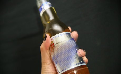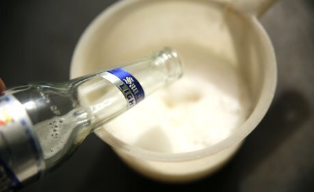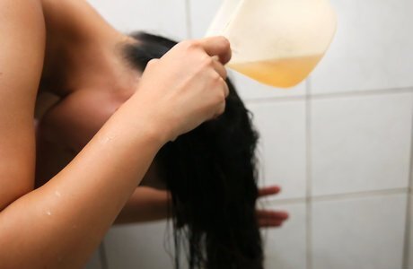 Prepare your rinse and decant it into a container that will allow easy application to your hair. A bottle with a nozzle or small hole in the cap would be ideal. Beer - Open the can or bottle of beer and allow it to go flat before applying to your hair. Apple cider vinegar - Mix five parts water to two parts vinegar. Mix up a reasonable sized batch of this and keep it in the bathroom to use whenever you wash your hair. Lemon juice - Juice one lemon and mix with a quarter of a cup of warm water. Herbal rinses - steep one teaspoon of your chosen herb in a cup of boiling water for a few minutes.