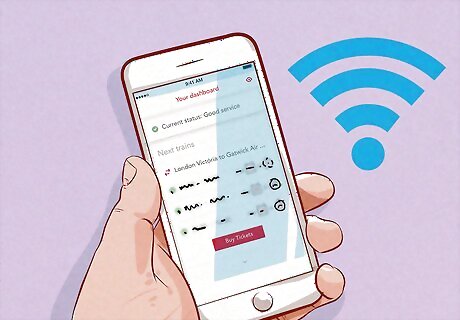 Get train tickets instantaneously through a travel app. For now, only the three train lines running between Gatwick and London have apps. You will need a phone and possibly WiFi service as well as a payment method like Paypal or a credit or debit card. Download the app, then use it to plan your trip and purchase tickets before reaching the station. The Gatwick Express uses an app aptly titled Gatwick Express. Search for it in your device’s play store or app store. The Southern and Thameslink lines both use the On Track app, which you can find in your phone’s play store or app store.