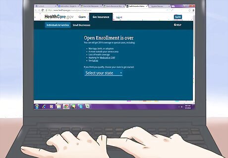 Go to the Health Insurance Marketplace. Visit https://www.healthcare.gov/marketplace/b/welcome/, where you'll be prompted to enter your state. Once you enter your state, you'll be redirected to your state healthcare marketplace site. If you want to speak with someone in person, call 1-800-318-2596, a help hotline staffed 24/7 by people who can guide you through the process. Note that each state site looks different and has slightly different options.