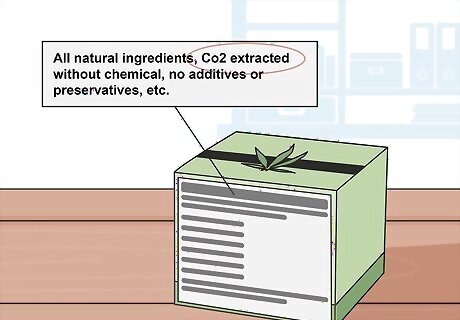 Look at the ingredients to see if there are any additives. High-quality CBD products usually list their ingredients underneath the nutritional label on the product. Check the ingredient list and check the amounts listed for each ingredient. Make sure the ingredients include the word “organic” or have asterisks next to them, or else the product may have been processed. If you don’t see any organic labels in the ingredient list, then it may not have been harvested properly. If you don’t see any ingredients listed, then avoid the product completely since it could be low-quality. The CBD may still have an “organic” label even if up to 5% of the ingredients are not organically grown.