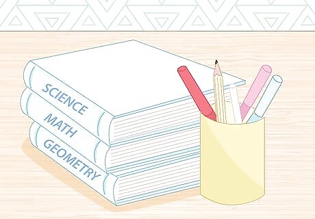 Gather all of the school supplies you will need for eighth grade. Over the summer, your school will have sent you a list of all of the things that you will need for the year ahead. This list usually includes things like notebooks, pens, pencils, and book covers, however things like a water bottle and gym shoes if you are taking gym are a good idea too. If you won’t be eating cafeteria food, get a lunch box to hold your food throughout the day. The subjects that you are taking will determine what you need for the school year.