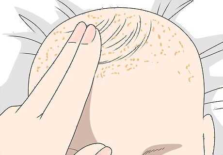 Remove the scales with your fingers. The baby's scalp won't be harmed if you use your hands to take off the "cap." It's the simplest, and one of the most effective, ways to get rid of the scales and dry patches that occur when a baby has cradle cap. Rub your fingers over the scaly patches, then gently peel and scrape away the scaly dead skin and discard it. If you don't want to use your fingers to pick off the scales, put on a pair of thin latex gloves (as long as your baby isn't allergic to latex). You could also cover your hands with plastic wrap to prevent directly touching the scales. Keep in mind that cradle cap is not contagious, and picking off the scales will make your baby more comfortable. Don't use tweezers or another sharp tool to remove the scales, since you may accidentally poke the baby's head and cause an injury.