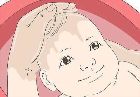 Wash the baby's head every day. Use warm water to bath the baby's head, and gently massage his or her scalp with your fingers. The water will help loosen the cradle cap scales, when you can then peel or scrape away. Using a mild baby shampoo can help loosen the scales, so consider adding one to your washing routine. However, you may find that shampoo dries the baby's scalp out further. Use a soft-bristled brush to help loosen the scales while the baby's head is still wet.