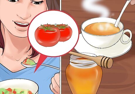 Eat happy, healthy foods. While having a good diet is important for fighting depression and anxiety, certain foods are a great natural resource to boost your mood.For example: Cherry tomatoes are a great addition to your salad. These little tomatoes contain a component called lycopene which has antioxidants that are responsible for enhancing your mood. Instead of iceberg lettuce in your salad, try spinach. Spinach is full of iron and folic acid which boosts your immunity by buffing up your red blood cells. Drink green tea and add honey. Honey is a great sugar substitute that contains kaempferol and quercetin which improve brain health. For a healthy, lean meat try turkey. Turkey has tryptophan which makes you happy and provides a great source of protein.