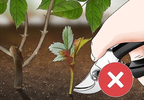 Avoid damaging the roots when pruning. Pruning your rose bushes helps keep your roses looking healthy. However, damaging the roots during pruning can cause suckers to form. You should also be careful when cutting away suckers. If you prune the suckers but damage the roots, more suckers can grow.