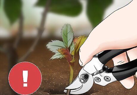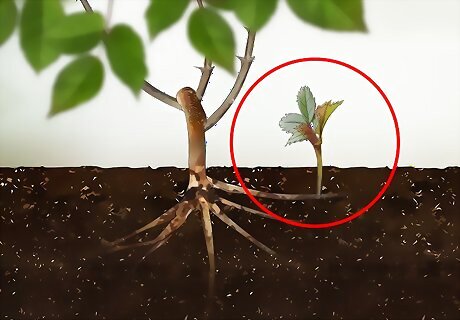 Recognize a sucker. Suckers are offshoots of your rose bush that grow from underground. They will appear as a separate stem or shoot of the bush, generally with leaves that are lighter in color. They also may have a different number of leaves. Suckers appear when the rose bush is damaged, like from a hoe or shovel.