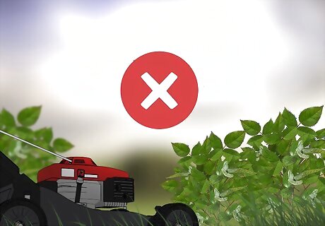 Avoid mowing around your rose bush. Mowing can cause damage the the roots of the rose bush, which may lead to suckers. Instead of mowing right next to a rose bush, use clippers to trim the grass near it. If you are worried about damaging the roots with clippers, pull the grass and weeds away with your hands.