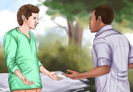 Do not argue with the other driver. Even if you believe that the accident is completely their fault, do not yell or argue with the other driver. Arguing with the other driver or letting your anger get the best of you will not fix your car. Instead, it might make the other driver angry enough to blame the accident on you. The other driver also might not cooperate with the insurance company.