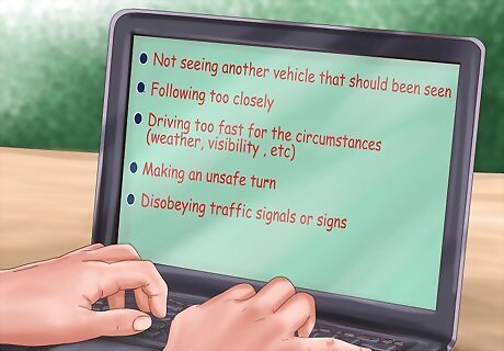 Write down an explanation of what happened. Before you have your interview with the insurance company, write down what happened in the accident. This way, you will be able to clearly communicate your views without getting flustered by questions from the claims adjuster.
