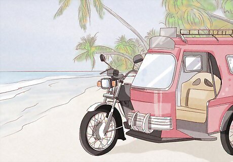 Ride trikes around Boracay to visit shops, restaurants, and beaches. Trikes are the main form of transportation in Boracay, and the trikes drive between stations on the island. Prices can range between services, and sometimes the main road can be busy and full of trike traffic. Be patient and remember that the drivers work hard to provide great service to tourists! You can purchase a trike ride from the stations at the boat jetties, where most services will have a stand. Remember that you can hop off the trike in between stations if you don't want to ride all the way to a different station.