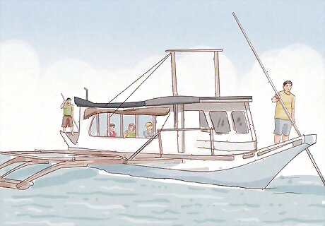 Pay for the ticket, environmental fee, and terminal fee to board the boat. For adults, the tickets cost about $4, including all fees. For children under 12 years, the environmental and terminal fees are waived for a total cost of about $0.50.Tip: Once you have your ticket, you can move around the boat dock and the area until the boarding time printed on your ticket.