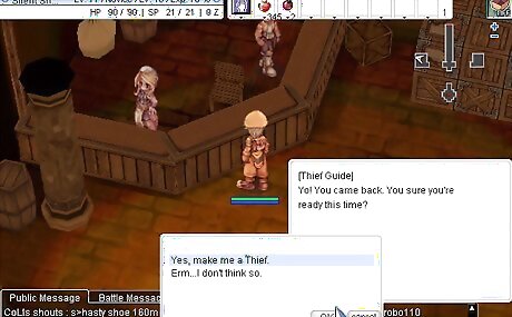 Go to a job change NPC (if you are playing on certain Private servers) or find the corresponding NPC to what job class you want to be. Once you've decided what class you want to be (the choices are archer, mage, acolyte, swordsman, thief, merchant, ninja, gunslinger and taekwondo), try going to Google to search for "RO _______ job change quest" or something and put whatever job class you want to be in the blank. Another good RO database is called ratemyserver.net