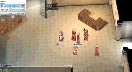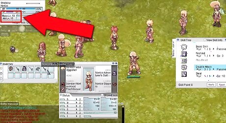 If you chose not to go to the training grounds, type in "/nc" (auto-attack...you'll keep attacking something until you kill it) and either go to Prontera Fields (go to the city Prontera and walk south to the edge of the city. There'll be a swirly light. Click on it to walk into it, and then you'll be in Prontera fields-a map with fairly easy-to-kill monsters.), Geffen fields (go to the city of Geffen, walk east to the edge of the city and attack the monsters on the other side of the warp portal there), or really any other field to a main town.