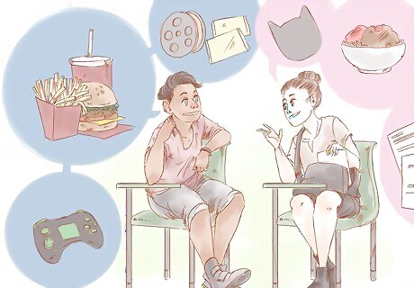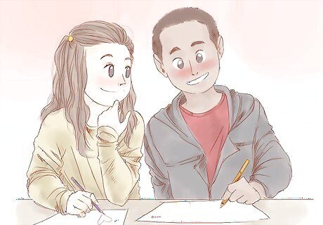 Start doing stuff together. Once you've become friends, start partnering up in science class, trying to be on the same team in gym, playing sports together at recess, or just hanging out at the park to do some studying or skateboarding. It's always important to do something your crush likes to do, without making it seem like a date. Do not try to give hugs or affectionately touch each other in any way. You guys are just friends at this stage.