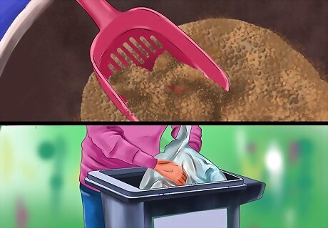 Protect yourself when cleaning your cat's litter box. While your cat is taking Ronidazole, you should protect yourself from contact with its urine and feces. This means that you should wear gloves while cleaning its feces. You should also double bag your cat's waste and used litter. Place the bags of waste directly into your outdoor trash can. Continue to wear gloves and double bag waste for three days after your cat finishes its course of medication.