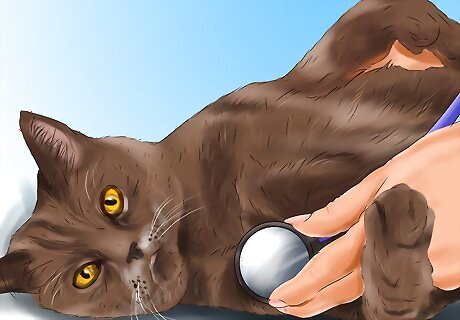 Take your cat to be seen by a veterinarian. If you suspect that your cat has Trichomoniasis, you should have it looked at by a veterinarian. Tell the veterinarian about your cat's symptoms and when they started, and allow your veterinarian to do a thorough examination of your cat. If your veterinarian suspects Trichomoniasis, they will then test your cat's feces to look for the protozoan. Tests that your veterinarian may use for diagnosis may include a saline diluted direct fecal smear, inoculation into a testing pouch, or DNA extraction and testing. Testing your cat's feces will take some time.