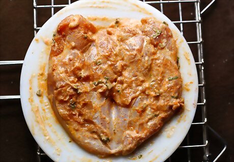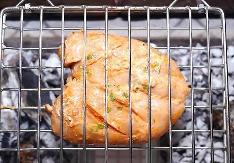 Clean and oil the cooking grate. After the grill has come to temperature, scrub the grate with a long-handled wire grill brush. Then dip a wad of paper towels in vegetable oil, grab the wad with grill tongs, and lightly coat the grate with oil. Try to coat the grate as thinly and evenly as possible. Too much oil can cause a flare-up, and you don't want to char the breast.