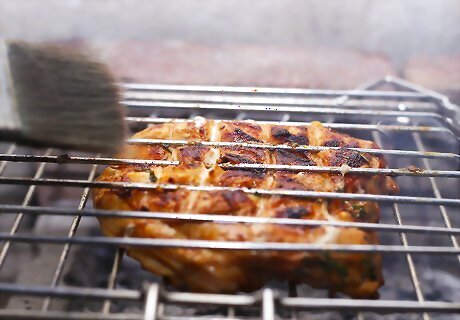 Brush the mixture onto the turkey skin. Use a basting brush to coat the breast. Don't use it all; make sure you have enough to periodically baste the breast while it cooks.