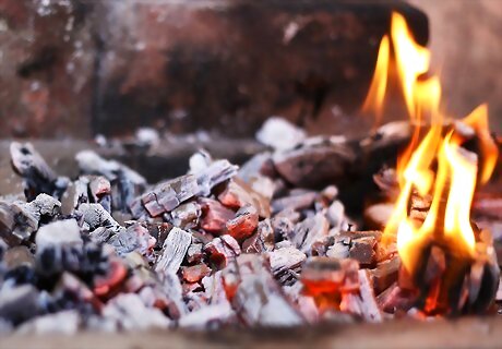 Add the drained wood chips, if you're using them. You're just about ready to start grilling! Drain the wood chips, then lift the cooking grate and place them on the charcoal embers. Leave some room between the chips instead of completely covering the charcoals. If you have a gas grill, place the chips in an aluminum pan (or, if you have one, a pan made for wood chips), cover it with foil, and poke holes in the cover. Then lift the cooking grate and place the pan on the opposite side of the grill's air vent.