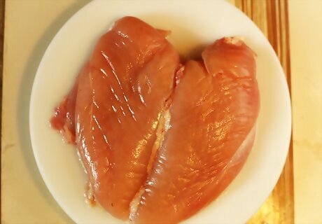 Pat the turkey breast dry with paper towels. Thoroughly drying the breast is a key step. Excess moisture will leave your final product with soggy skin that sticks to your grill's cooking grates. When working with raw meat, remember to wash your hands with soap and hot water before touching other objects or surfaces.