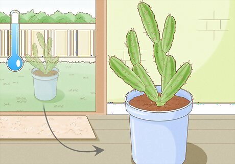 Maintain consistent temperatures. A cactus will go dormant if it is too hot or cold. Bring outdoor potted cactus indoors if temperatures are too cold.
