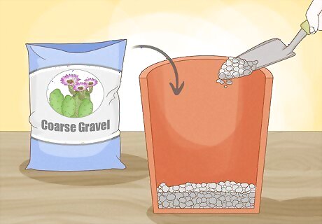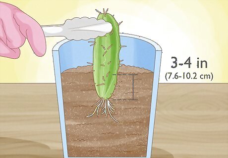 Place the plant carefully into enough soil so that it can support itself without falling over. Try to bury at least 3 to 4 in (7.6 to 10.2 cm) of the cactus plant in the soil. Then, layer plenty of gravel, sand, or rock on top to keep it from falling over.