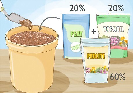 Develop a potting mix consisting of 60 percent pumice (or perlite or vermiculite), 20 percent coir (or peat), and 20 percent topsoil. Add amendments such as time-released fertilizer and bone meal.