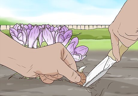 Divide your crocus plants every 3-5 years after blooming. Dig up crocus bulbs every 3-5 years to harvest fresh bulbs from your original plantings. Smaller bulbs will form on the original bulbs. Remove these and replant them as you did the original crocus bulbs for vibrant flowers. Discard or compost the original crocus bulbs.