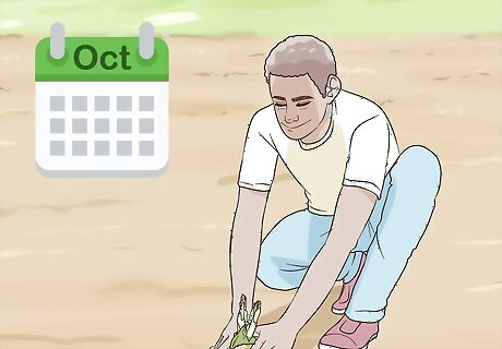 Schedule planting in the fall 6-8 weeks before a hard frost is expected. Plan to plant your crocus bulbs when the ground is consistently below 60 °F (16 °C) in the fall. In North America, this is typically in September or October in the North, or in October or November in the South. Resources such as the Old Farmer's Almanac and the National Weather Service can help you pinpoint when the first hard frost is likely to come to your area. If desired, you can buy a soil thermometer online or at your local garden store.