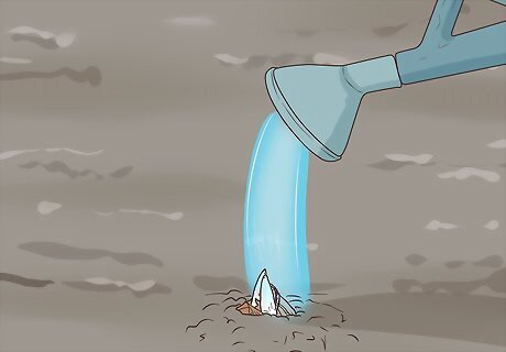 Use a watering can or hose to water your newly planted crocus bulb. Water your bulb until the soil is wet to the touch but not saturated with standing water. Since your crocus is planted in an area that drains well, the water will drain quickly. If it's a hot fall day warmer than 80 °F (27 °C), err on the side of watering a little more rather than a little less.