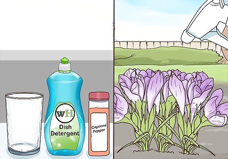 Spray any insects with a mix of water, dish soap, and cayenne pepper. For every 1 US pint (470 mL) of water, mix in 1 teaspoon (4.9 mL) of dish soap and 1 tsp (2.6 g) of cayenne pepper. Use a spray bottle to apply the mixture directly onto the insects.