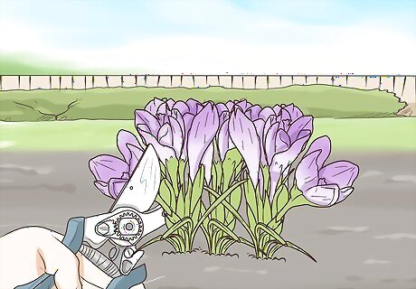 Cover your crocuses if snowy weather returns after they have flowered. Use milk jugs cut in half or other plastic coverings to shield any crocus shoots that spring up in inclement weather. Remove the jugs or covers once the threat of bad weather passed. This way, your crocuses will continue to get adequate rain and sunlight.