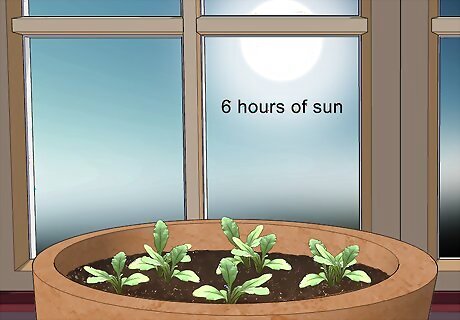 Keep the pot in an area with at least 6 hours of sunlight. Keep the herbs near a south-facing window indoors or outdoors if there is no risk of frost. Make sure the area gets full sun throughout the day. Keep the herbs near your kitchen so you can easily access them when you want to use fresh herbs.