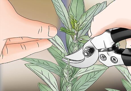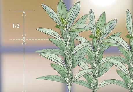 Harvest only one-third of the foliage at a time. Leave enough of the plant so it has a chance to regrow. You can harvest from the same herb multiple times throughout the growing season. Removing too much will make it more difficult for the plant to produce more leaves.