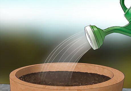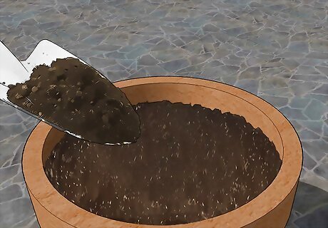 Fill the pot with potting mix so it’s 1 in (2.5 cm) below the edge. Use high-quality store-bought potting mix, or make a mixture of 3 parts potting soil, 1 part compost, and 1 part perlite or sand. Make sure the potting mixture drains well. You can also use earthworm castings or aged manure as a replacement for compost for the same effect. Avoid using soil from your garden when you plant your herbs. Garden soil is too dense, and it could also contain weeds or bacteria that may damage your plants. Top-dress the soil with compost for added nutrients.