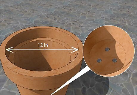 Purchase ceramic pots with drainage holes. Look for pots that are at least 12 inches (30 cm) in diameter if you want to fit multiple plants in the same container. Check the bottom of the pots to see if they have holes for water to drain out. Otherwise, use a drill to make 3-4 holes in the bottom. The size of the pot will limit the herb’s growth. For a single herb, use a pot that’s 4–6 in (10–15 cm) in diameter. A 12 in (30 cm) pot can typically accommodate 6 different plants depending on their mature size. If you have larger herbs, limit the amount to 3 or 4. Place pieces of broken pots, ceramic, or rocks over the holes so the soil doesn’t wash out when you water your plants.