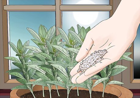 Use an organic fertilizer once a month to encourage healthy growth. Find a half-strength liquid formula to use on your herbs. If you’re growing herbs outdoors, apply the fertilizer when you water your herbs during the summer growing season. Pick a slow-release formula if you only want to apply the fertilizer once per year. Make sure the fertilizer is safe for vegetables or food if you want to cook with your herbs.
