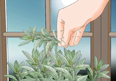 Pinch any weak or leggy stems to encourage bushier growth. Use your thumb and index finger to squeeze any stems that are broken or wilting. Otherwise, your herbs will use energy to keep these stems growing and affect your harvest. This encourages the other stems on your herbs to grow stronger.