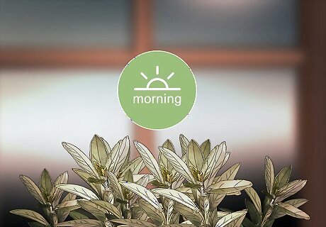 Collect your herbs in the morning. Your outdoor herbs are the freshest after the dew dries in the morning. Wake up early on the days you wish to harvest your herbs, though they will still be okay if you pick them throughout the day. Indoor herbs can be harvested at any time of the day.
