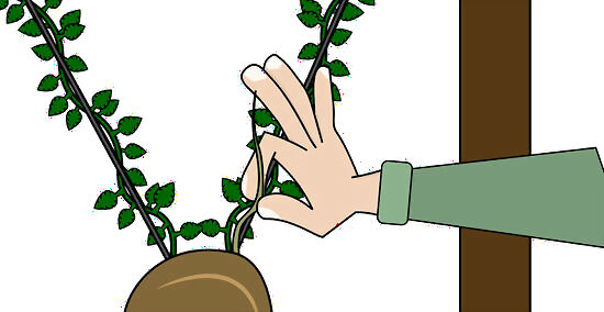 Train the bines to grow up the trellis once they sprout. When the hop bines emerge and grow to about 6 inches (15.2 cm), they need to be "trained" around the trellis to help them grow vertically. Place the trellis near the plants and gently wrap them around its base. Continue training the hops for a few days. After awhile, they'll begin growing clockwise around the trellis on their own.