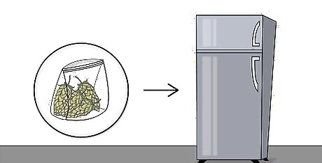 Store the hops in zip close baggies in your fridge. Until you're ready to use them, hops should be stored in airtight food storage bags in the refrigerator. If you won't be using them for awhile, you can freeze them. Properly stored hops will stay fresh for about a year.
