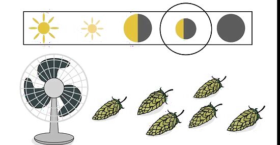 Dry the hops out of direct sunlight with a fan. Place ripe hops on a flat surface away from sunlight. Make sure they are only a single layer deep. Turn on a fan and let it blow over the hops for a few hours. Flip them over and continue drying them on the other side. Continue drying and flipping the hops until there is no moisture left on their surface. You may also store your hops in a paper bag in a cool, dark and dry place to let them dry out over the course of a few weeks. Check home-brewing websites for hop-drying kits that make the process faster.