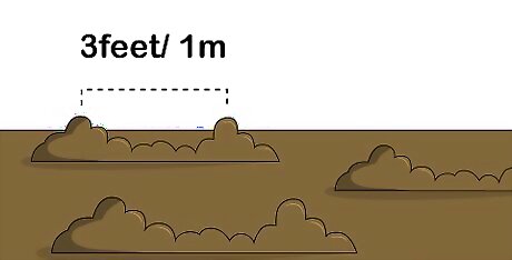 Prepare soil mounds for each plant. Hops like to be slightly elevated and planted in mounds. Create one mound for each rhizome you plan to plant. The mounds need to be spaced about 3 feet (0.9 m) apart, so the hops have plenty of room to grow.