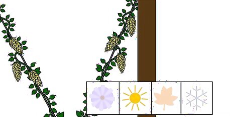 Select an area with plenty of sturdy vertical space. Hop bines can grow 25 feet (7.6 m) or higher into the air and weigh more than 20 pounds. You can choose a planting spot near your house, so you'll be able to lean a tall trellis against it. The trellis can also be propped up against a sturdy pole, fence or other structure close to the garden, if preferred.