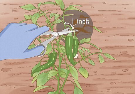 Cut the peppers from their plant leaving part of the stem. Pulling peppers off of the plant can break the stalk. It’s best to use garden shears or a sharp knife to cut the peppers off. Leave about 1 inch (2.5 cm) of stem on the pepper when you cut it off.