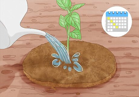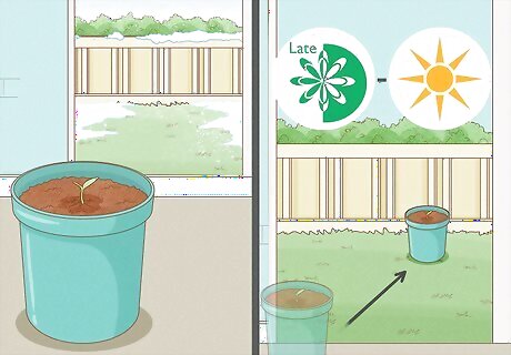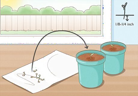 Plant the sprout in a 4 in (10 cm) pot if you used the bag method. If you started the seeds in a paper towel, you can transfer the seed to a pot with good drainage when they have sprouted. Put the seedling about ⁄8 to ⁄4 inch (3.2 to 6.4 mm) under the soil. Use organic soil, or soil that’s meant for seed-starting. Also make sure the bottom of the pot has drainage holes. Keep the plant in the pot until it grows about 8 to 12 inches (20 to 30 cm) tall.