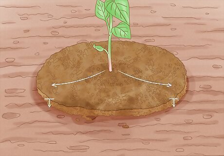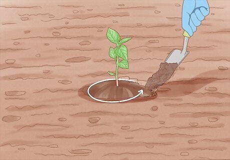 Fill the hole around the plant’s roots. Use the extra dirt from when you dug the holes to fill in around the plants. Pack the soil down nice and tight so it is pressed against the roots and soil that was on the roots.