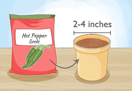 Place seeds directly into 2 or 4 in (5.1 or 10.2 cm) pots as an alternative. Keep the soil consistently moist but not over saturated. Use a seedling mat to keep the soil warm and encourage faster germination and growth. Transplant the peppers into a larger pot or outdoors when your pepper is at least 6 to 8 inches (15 to 20 cm) tall.