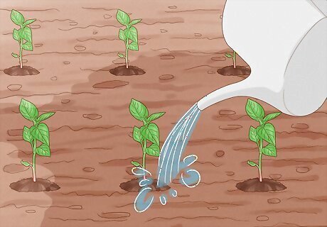 Lay a thick layer of mulch around the base of the plants. Pepper plants want evenly moisturized soil, which can be hard to maintain. To keep the water in the soil from evaporating, pack mulch, such as weed-free straw, around the base of the plants. Mulch protects the soil from the sun and helps the soil store moisture better.