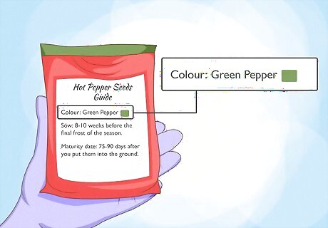 Pay attention to the color of the peppers. Most pepper varieties have a color range that tells you when they are ready to pick. Look at the seed packet to see what color the peppers shown are. The packet might also list what color the peppers should be at peak ripeness.